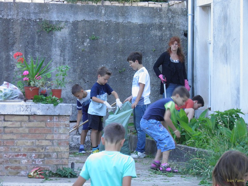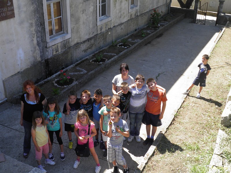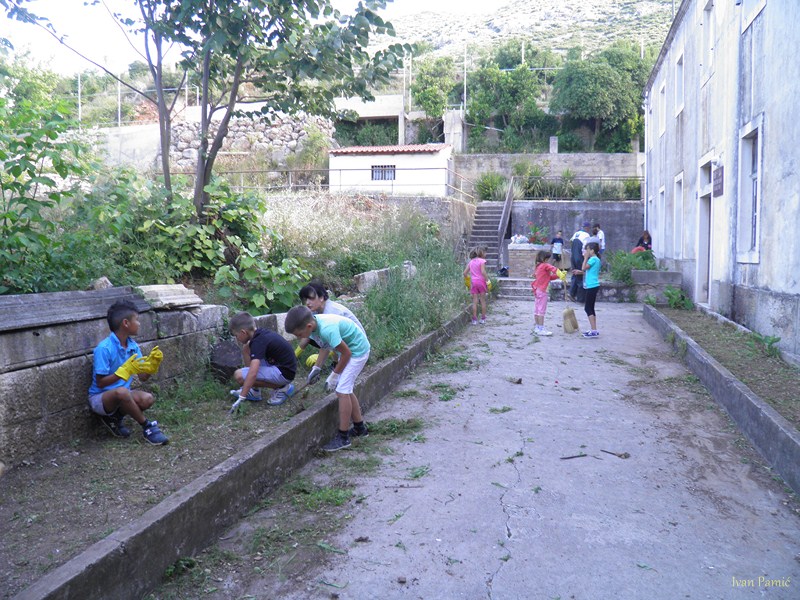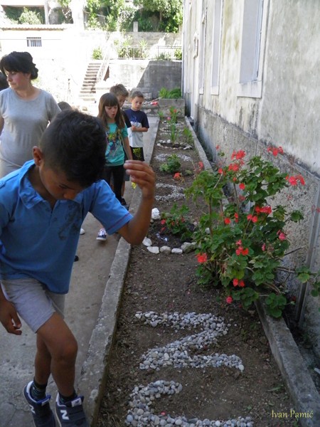 Viganj, 13.06.2013. – Posljednjeg dana nastave pod budnim okom učiteljica Miljenke Ravlić i Donie Bogoje, školska djeca od prvog do četvrtog razreda uredila su zdušno mali vrt ispred Hrvatskog Doma u prolazu za školu. U pravom smislu riječi “kad se male ruke slože” mali Vignjani i Kućišćani posadili su cvijeće i morskim žalom u vrtu napisali ime svog najljepšeg mjesta.