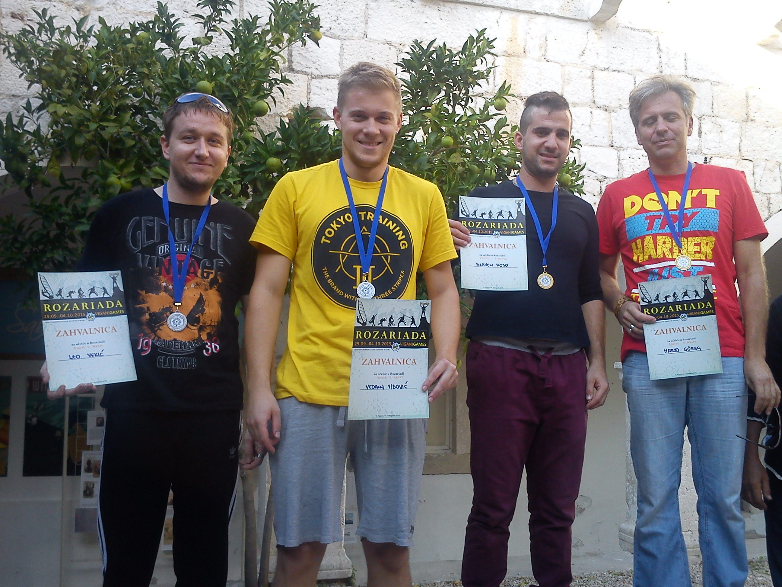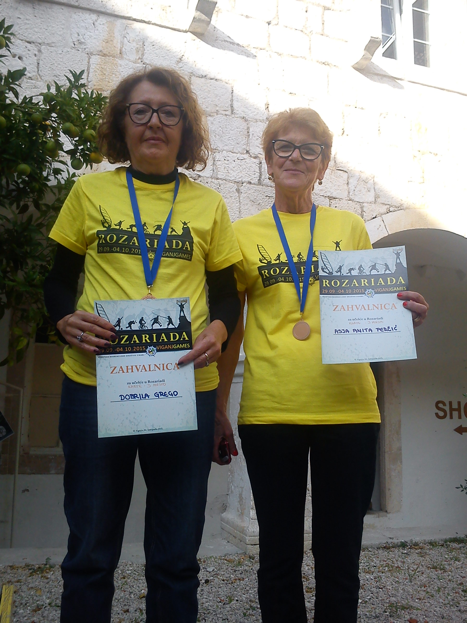 Viganj, 04.10.2015. – Danas je odvezena druga biciklistička utrka u sklopu Rozariade, Jurjevići- Viganj. Po nezgodnom i skliskom terenu najuspješniji je bio Ante Ortolio iz Vignja sa vremenom 40m05sek – tri minuta boljim vremenom od prošle godine. Drugi je bio Jozo Perkušić iz Kućišta (40m23s), a treći Marko Židić iz Orebića (41m05s). Zlatnu medalju za ženske natjecatelje osvojila je Maja Perkušić iz Kućišta (58m10s).