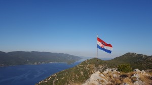 Viganj, 05.08.2016. – Berislav Vidović, Pavica i Ivica Vekić sa ekipom minutom tišine odali su počast poginulim braniteljima Domovinskog rata i u povodu Dana pobjede podigli hrvatsku zastavu na sv. Sućuraju.
