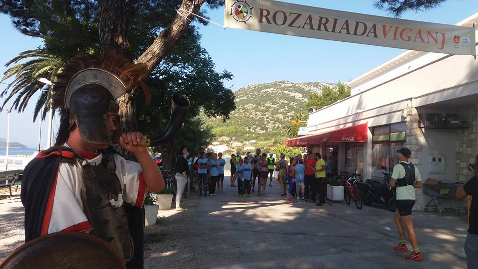 Viganj, 01./02.10. subota/nedjelja. – Finalni dan Rozariade krenuo je u 10 sati sa treking utrkom Pelješac trail na kojem se prijavilo tridesetak natjecatelja, od kojih 17 za utrku Osvajanje Grada – Nakovana od 13 km, a sedam na utrku Osvajanje Sv. Ilije od 28 km, dok su ostali krenuli na Đir kroz sela. Početak utrke označio je puhanjem u rog ilirski ratnik, koji je poslije starta otišao na Grad dočekati prolaze natjecatelja, što je ovu utrku učinilo dodatno atraktivnom. Gotovo cijelo vrijeme utrke ilirski ratnik kojeg je ovom prilikom glumio Denis Vekić puhanjem u rog sa vrha ilirske gradine Grad navodio je i motivirao trkače.