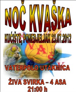23.07. ponedjeljak, NOĆ KVAŠKA – U Kućištu će biti organizirana fešta KVAŠK-a koja već postaje tradicionalna. Uz vaterpolo utakmicu, prisutne će zabavljati grupa 4 ASA