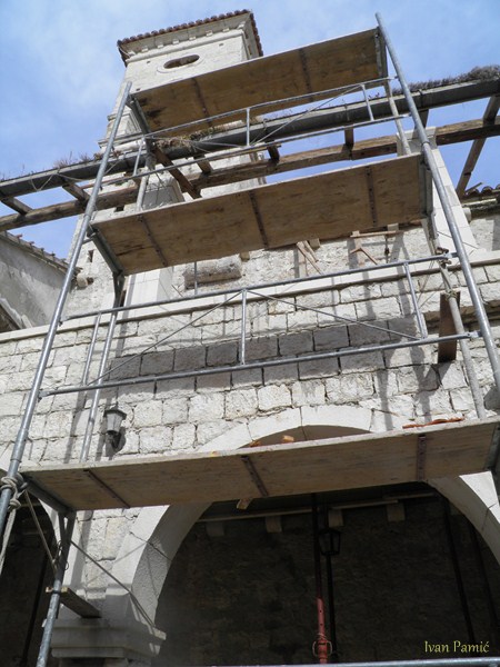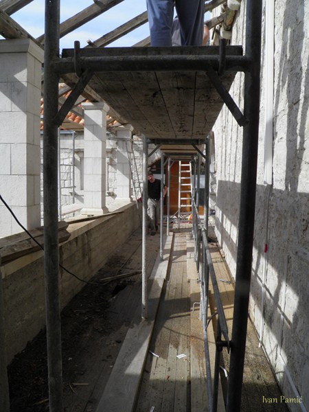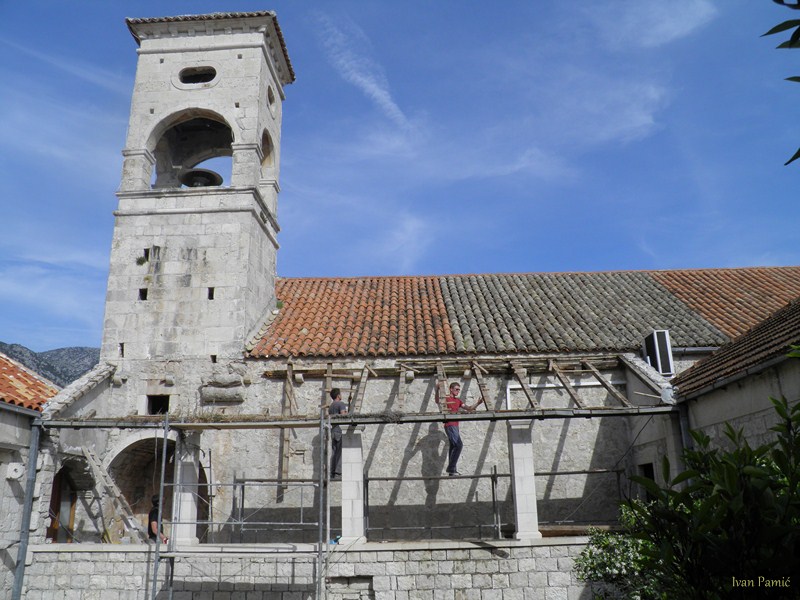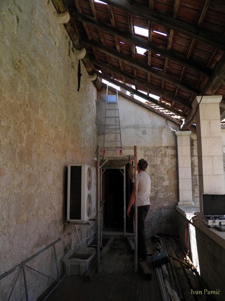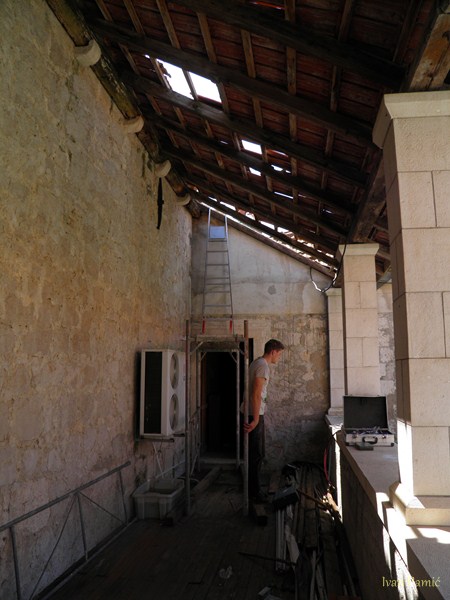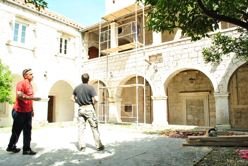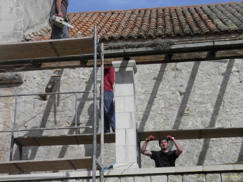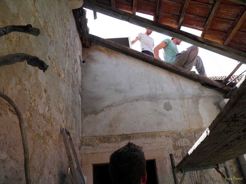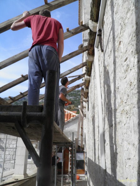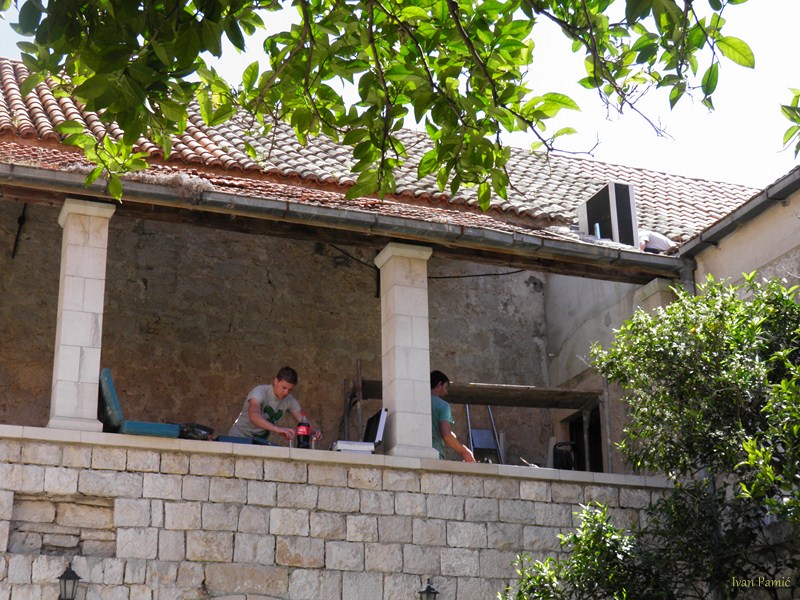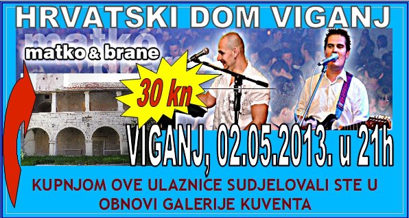Viganj, 28.04.2013. – Danas je počela obnova galerije Kuventa. Mladi članovi Hrvatskog Doma Viganj vlastitim snagama i sredstvima skinuli su derutni krov galerije. U slijedećim danima kreće druga faza – postavljanje novog krova, a u zadnjoj fazi predviđeno je skidanje starog drvenog poda i postavljanje novog sa stepeništem. Prije par dana izmještena je i vanjska jedinica klime crkve koja je bila smještena unutar galerije, a čija je kondenzacija pridonijela propadanju poda. Mladi članovi Hrvatskog Doma Viganj ovih dana obilaze kućanstva po mjestu, te firme i obrte skupljajući dobrovoljne priloge za obnovu Kuventa. Prikupljen je već značajan dio sredstava, a sredstva se nastavljaju prikupljati. Ovog četvrtka 02.05. organiziran je i dobrotvorni koncert na kojem će nastupiti Matko&Brane koji su se u korist Doma odrekli svog prihoda. Sva sredstva prikupljena sa ove svirke također će se uložiti u Kuvenat, pa ovom prilikom članovi Hrvatskog Doma Viganj pozivaju sve da dođu i uživaju i da samim time pridonesu obnovi. Karte se već nalaze u prodaji.
