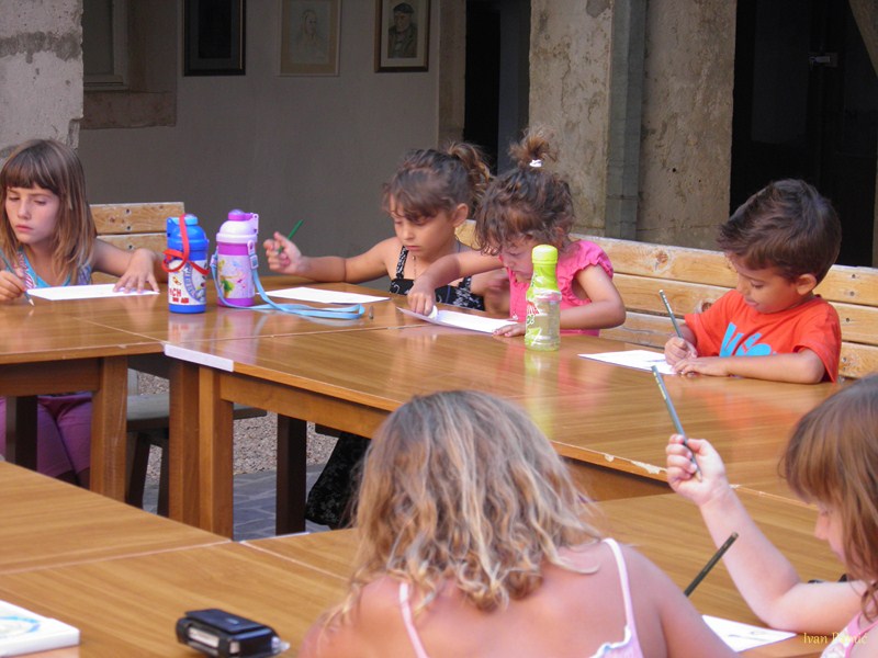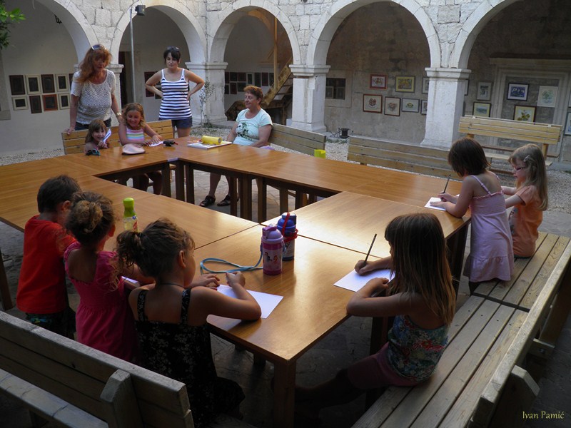 Viganj, 22.07.2013. – Večeras je u Kuventu počela dječja radionica koje vodu odgajateljica Nedjeljka Lupis i učiteljica Miljenka Ravlić. Cilj je međusobno druženje domaće djece s djecom naših gostiju, kako bi se ona međusobno kroz igru i stvaranje što bolje upoznala. Zadnji dan radionice izabrati će se najbolji radovi te će oni biti izloženi. Radionica će trajati tjedan dana, a voditeljice pozivaju sve roditelje da dovedu djecu u Kuvenat u 18:00h svaki dan.
