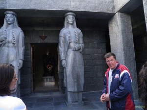 Pomalo sam se razočarao stigavši u Cetinje. Kao prijestolnica Crne Gore i izvorište crnogorske države ipak sam očekivao malo uređeniji grad. Zbog straha da ćemo zakasniti produžili smo odmah do Lovćena posjetiti mauzolej Petra Petrovića Njegoša. Bilo je 16h, a mauzolej se zatvarao u 18h. Pola sata vožnje uskom cestom na kojoj se jedva mogu mimoići dva auta predstavljalo je pravo iskušenje, a na samom kraju iznenađenje, velika svita i televizijske ekipe na svakom koraku, a na ulazu u suvenirnicu simpatični Crnogorac nudi domaću rakiju. -“Uzmi, danas je veliki dan za Crnu Goru, pa da nazdravimo!”. Pitam ga u čemu je stvar, a on objašnjava da je upravo danas proslava 200 godišnjice največeg sina Crne Gore Petra Petrovića Njegoša, a svita koja je upravo odlazila bili su predstavnici vlade na čelu s predsjednikom i premijerom.