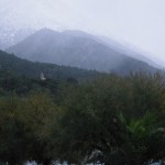 Viganj, 26.11.2013. – Sveta Kata (25.11.) – snig na vrata, kaže stara poslovica, a ove godine je Pelisac zabilio točno po njoj. Snježne pahuljice počele su padati noseći snažnom burom nekoliko minuta prije ponoći, a do jutra su se zabijelili vrhovi i padine brda, dok se zbog tople zemlje snijeg nije zadržavao na samoj obali. Pahulje su padale u Orebiću, Kućištu i Vignju, dok je tanak sloj snijega prekrio Nakovanu i Pelišku Župu.