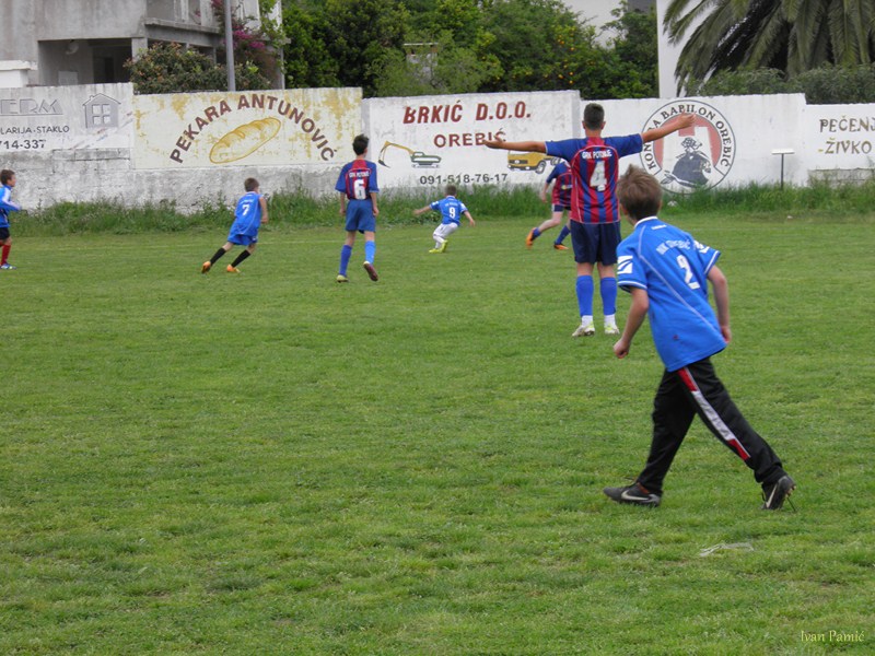 Orebić, 04.05.2014. – Na terenu NK Orebić u poslijepodnevnim satima održana je prva službena prijateljska utakmica ove sezone za najmlađi uzrast NK Orebića protiv NK Grka iz Potomja. Iako su Potomjani bili nešto starijeg uzrasta mali Orebićani pružili su im jaki otpor te nakon gubljenja od 4:1, čak izjednačili na 5:5. Utakmica je završila rezultatom 6:5 za male Potomjane, a kasnije su maleni otišli kućama puni dojmova. Za najmlađi uzrast NK Orebića kojeg vodi Zoran Slišković nastupili su uz ostale Luka Kopić, Ivan Julio i Karlo Pamić, Ivan i Matko Sršen iz Vignja, te Nikola Petković iz Kućišta.