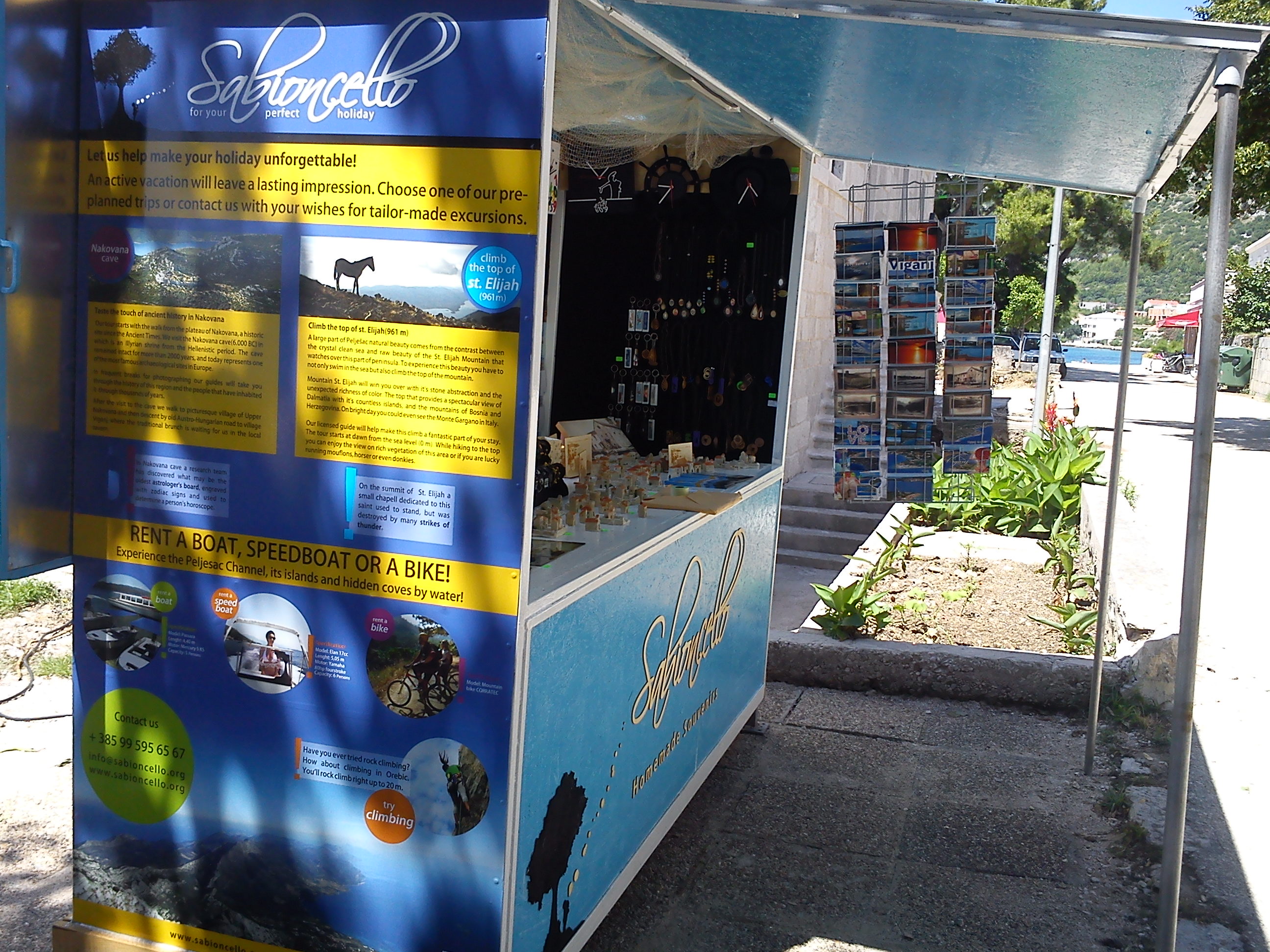Uz suvenire obrt Sabioncello nudi i izlete na Iliji i Nakovani, a u ponudi imaju i iznamljivanje bicikla i brodica. Više na >>> http://sabioncello.org/