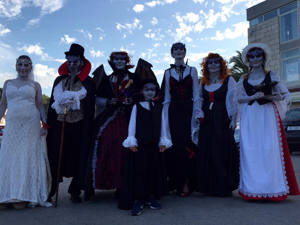 Korčula, 30.06.2016. – Na ovoj 15. za redom proslavi “Pola nove godine” ekipa iz Vignja pod vodstvom Sanje Šale opet je izazvala pozornost posjetitelja. Ove godine predstavili su svoje umiječe maškaravši se u živopisnu familiju vampira iz Transilvanije . Osim Sanje u ekipi su bili Ante i Olga Ortolio, Ana Njakara Trojanović, Zdenka Petković i Bože